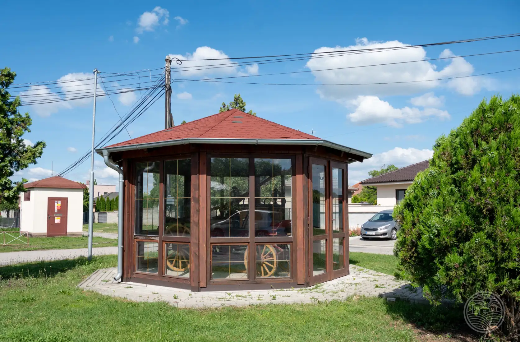 V presklenenom altánku je umiestnená historická hasičská striekačka, ktorá bola v minulosti využívaná na hasenie požiarov v obci a okolí.